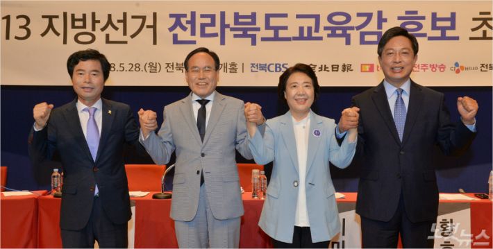 한편 전북교육감 선거는 모두 5명이 출마했으며, 이재경 후보는 선거법상 언론사 초청 기준에 따라 토론회 초청 대상에 포함되지 않았다.