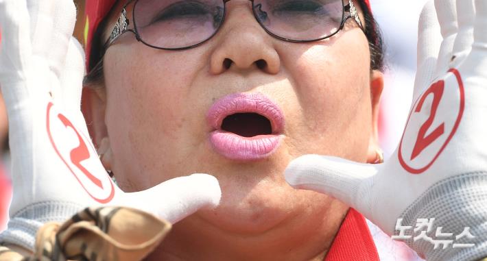 6.13 지방선거의 공식선거운동이 시작된 31일 오후 경기도 수원시 지동시장 인근에서 자유한국당 남경필 경기도지사 후보의 유세단원들이 환호를 하고 있다.