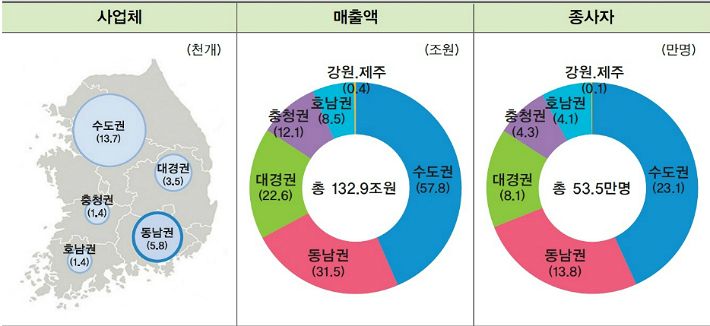 동남권에 이처럼 뿌리산업 집적도가 높은 것은 지역 주력산업인 기계와 조선·자동차 등 수요산업과의 연관성이 매우 높기 때문으로 분석된다.