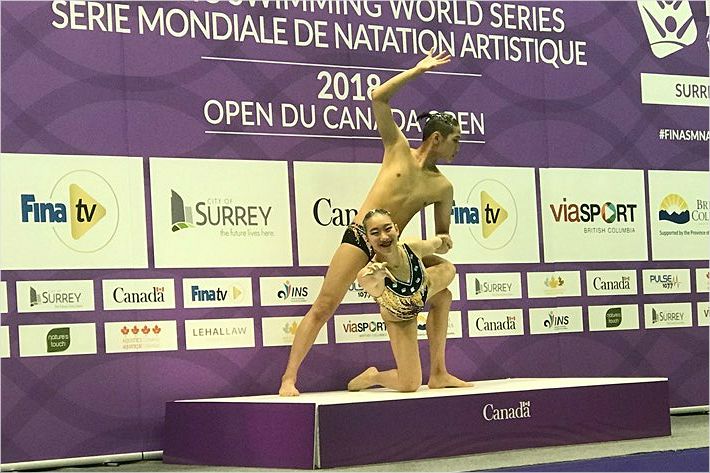 가수 변진섭 씨의 차남 재준 군(16)이 2일(한국시각) 열린 2018년 캐나다 오픈대회 아티스틱 스위밍 혼성듀엣 종목에서 1위에 입상했다.