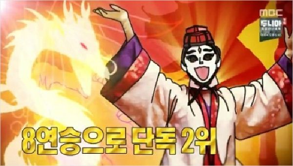 가왕 동방불패가 8연승에 성공했다. 3일 방송한 MBC 주말 예능 '복면가왕'에서 가왕 동방불패는 검투사를 제치고 가왕의 자리를 지켰다.
