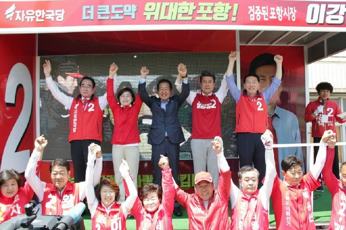 자유한국당 홍준표 대표의 지난 1일 경북 포항 지원 유세 모습. (사진=자유한국당 제공)