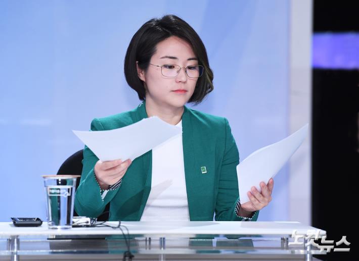 4일 오후 서울 여의도 KBS본관에서 열린 6.13지방선거 소수정당 소속 서울시장 후보자 토론회에 참석한 녹색당 신지예 후보가 토론회를 준비하고 있다. (국회사진취재단)