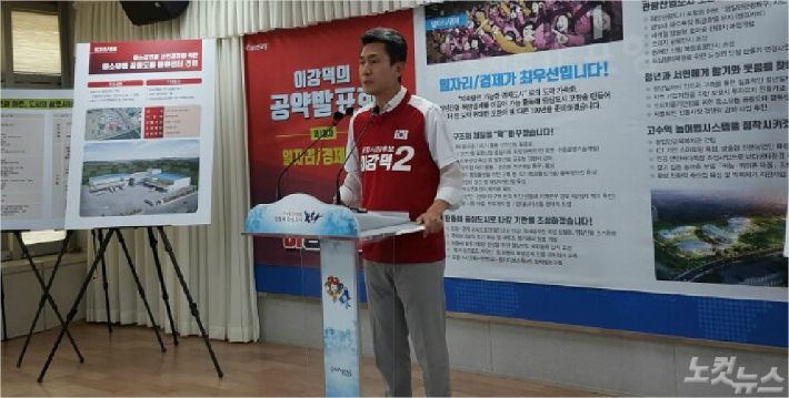 자유한국당 이강덕 포항시장 후보는 4일 시청에서 일자리 경제부분 공약을 발표하고 영일대해수욕장 특급호텔 유치와 중소유통 공동도매 물류센터 건립을 약속했다.