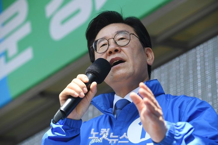 6.13 지방선거의 공식선거운동이 시작된 지난달 31일 오전 경기도 파주시 금촌역 인근에서 더불어민주당 이재명 경기도지사 후보가 선거유세를 하고 있다. (사진=이한형 기자)