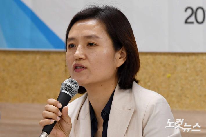 7일 서울 민주사회를 위한 변호사모임 대회의실에서 열린 양승태 대법원장 체제 사법농당과 재판거래 의혹 유엔 인권이사회 민변.참여연대 공동진정 기자회견에서 박정은 참여연대 사무처장이 발언하고 있다.