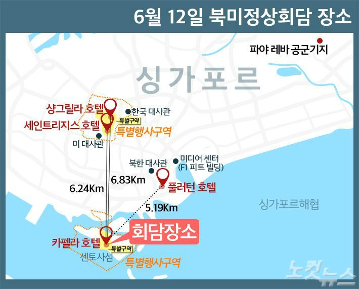 트럼프 대통령이 묵을 가능성이 큰 샹그릴라 호텔 일대는 이미 지난 4일 특별행사구역으로 지정됐다. 이 호텔에서 회담 장소인 카펠라 호텔은 직선거리가 6.83km에 불과해 '야수'라는 별명을 가진 대통령 전용 리무진을 타면 10분 안에 도착할 수 있을 전망이다.