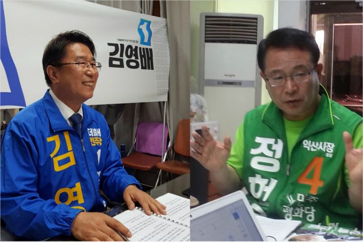 더불어민주당 소속 도전자인 김영배 후보와 민주평화당 소속 현직 시장인 정헌율 후보가 일대일 맞대결을 벌이는 익산시장 선거는 전북지역 최대 접전지로 꼽히고 있다.