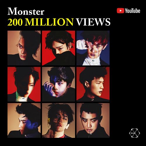그룹 엑소(EXO)의 '몬스터(Monster)' 뮤직비디오가 유튜브 조회수 2억뷰를 돌파했다.