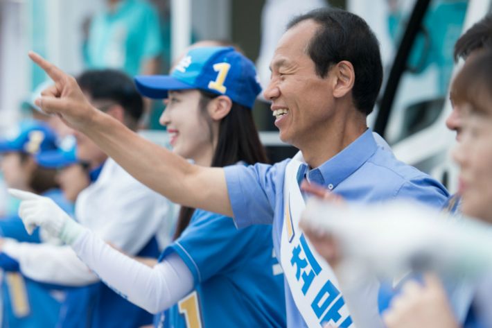 10일 강원 양구 유세에 나서고 있는 더불어민주당 최문순 강원도지사 후보.(사진=최문순 후보 제공)