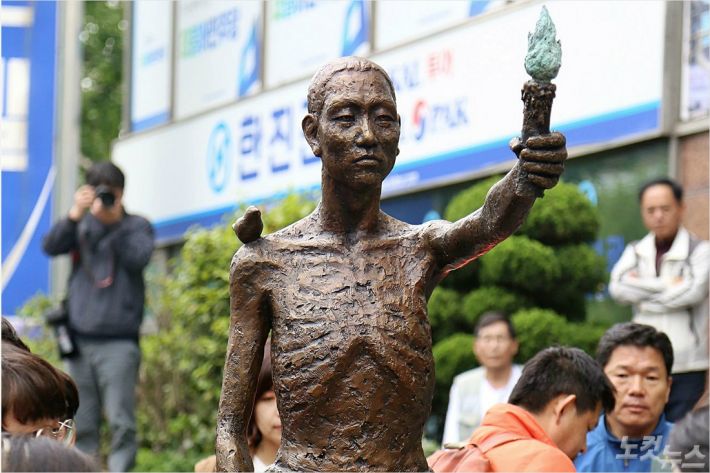 동구청은 지난달 31일 일본영사관 인근 인도에 설치된 강제징용노동자상을 강제로 철거해 일제강제동원역사관 울림의 방으로 옮겼다.