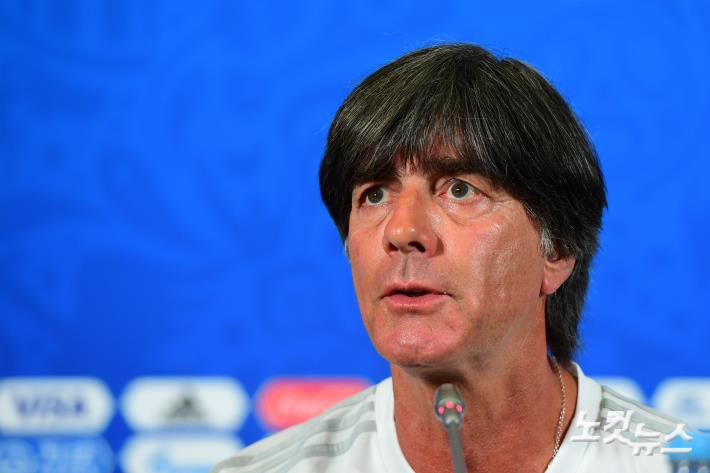 26일(현지시간) 2018 러시아월드컵 F조 대한민국과 독일전이 펼쳐질 러시아 카잔 아레나에서 독일 축구대표팀 요아힘 뢰브 감독이 기자회견을 하고 있다.