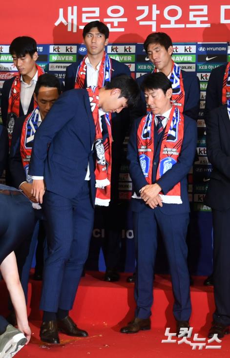 16강에 오르지는 못했지만 세계 1위 독일을 물리치고 유종의 미를 거둔 러시아 월드컵 축구 대표팀이 29일 오후 인천국제공항을 통해 귀국. 일부 팬들의 계란 세례에 당황해하고 있다.