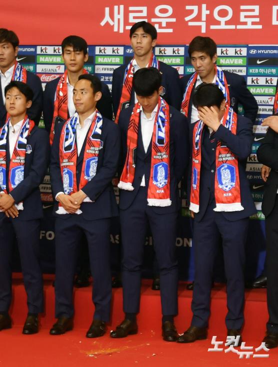 16강에 오르지는 못했지만 세계 1위 독일을 물리치고 유종의 미를 거둔 러시아 월드컵 축구 대표팀이 29일 오후 인천국제공항을 통해 귀국. 일부 팬들의 계란 세례에 당황해하고 있다.