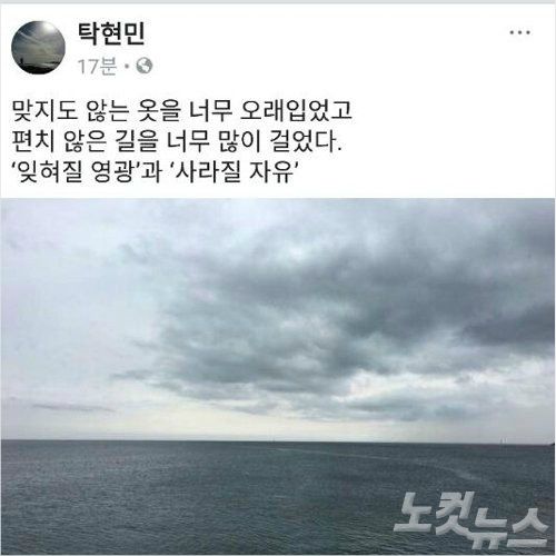 탁 행정관은 "선거법 위반 재판의 1심 결과도 사직을 결심할 수 있는 이유가 됐다. 100만원 이하의 벌금은 직을 유지할 수 있는 조건이 되겠지만, 제게는 오히려 떠밀려 떠나는 것이 아니라 마음 편히 떠날 수 있는 이유가 되었다는 말"이라고 설명했다.