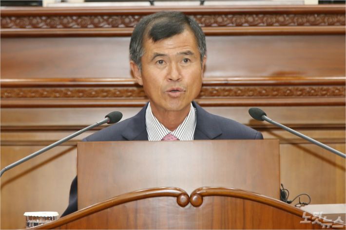 4일 10대 강원도의회 274회 임시회 1차 본회의에서 전반기 의장에 선출된 더불어민주당 한금석 의원.(사진=강원도의회 제공)
