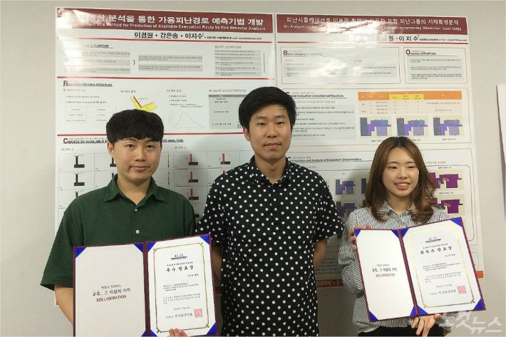 최우수발표상을 수상한 강은송 씨는 "피난시뮬레이션을 이용한 휠체어 이용자 포함 피난그룹의 지체특성분석' 논문에서 문화 및 집회시설이나 다중이용시설에서 재해약자와 일반인이 복합된 피난그룹의 군집대피특성을 파악하고자 했다"고 밝혔다.
