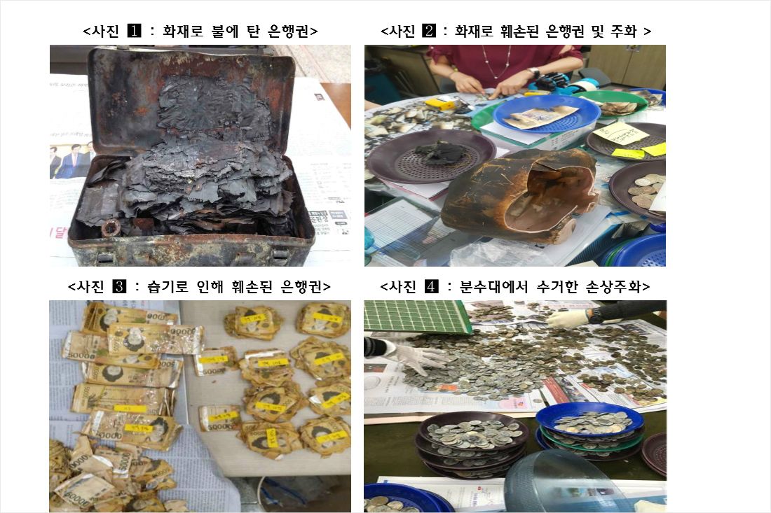 주요 손상 사유는 습기 및 장판 밑 눌림 등에 의한 경우가 1076건에 5억4700만원으로 가장 많았고, 불에 탄 경우가 590건에 3억5200만원, 칼질 등으로 조각난 경우가 408건ㅇ 5000만원, 기름 등에 오염된 경우가 78건 1300만원 등으로 나타났다.
