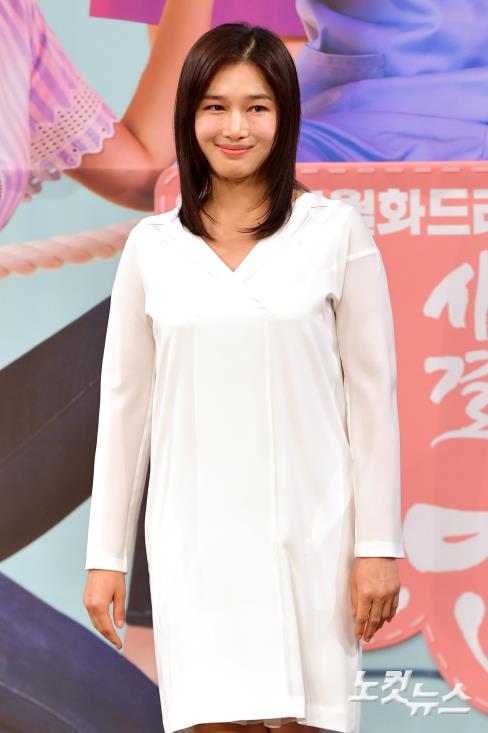 배우 선우선이 상암동 MBC에서 열린 드라마 '사생결단 로맨스' 제작발표회에서 포즈를 취하고 있다.