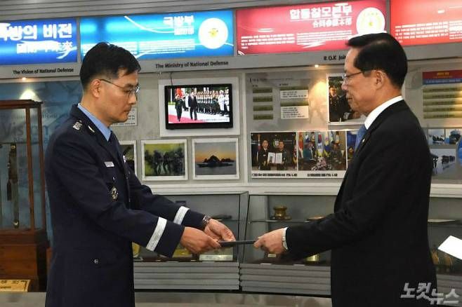 지난 11일 서울 용산구 국방부에서 송영무 국방부 장관이 ‘기무사 계엄령 문건’ 특별수사단장으로 임명된 전익수 공군 대령에게 임명장을 전달하고 있다. (사진=이한형 기자)