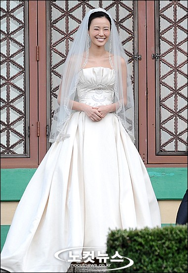 [BestNocut_R]결혼식을 앞둔 권상우-손태영 커플이 28일 오후 서울 중구 장충동 신라호텔에서 약식 기자회견을 연 가운데 신부 손태영이 웨딩드레스를 입고 환한 미소를 보이고 있다.