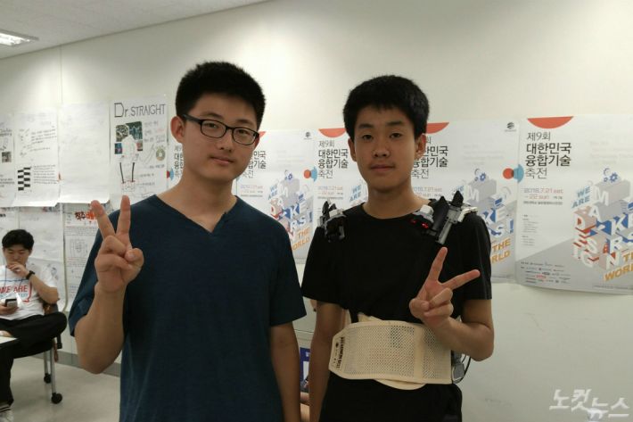 제9회 대한민국 융합기술축전’에서 대상을 수상한 대류눙 최민수, 김호근 학생. (사진=이규현 기자)