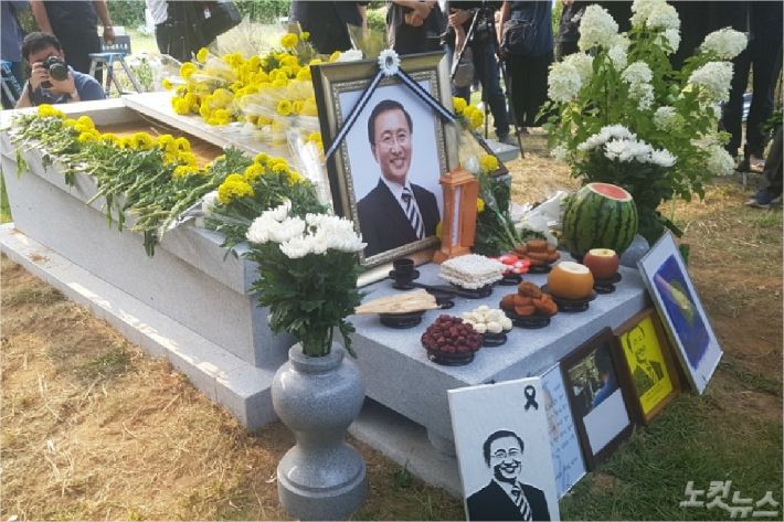 노 의원의 하관식(관을 땅속에 앉히는 의식)에는 1000여명의 정의당원들과 시민들이 참석해 고인의 마지막 모습을 지켜봤다. 모란공원은 민주열사들이 안식한 곳으로 박종철, 전태일 열사 등이 묻힌 곳이기도 하다. 노 의원은 이곳에서 민주 열사들과 나란히 잠들었다.