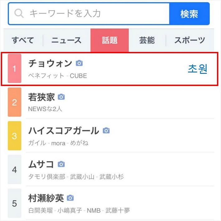 야후 재팬 검색어 순위 1위 한초원. (제공 사진)