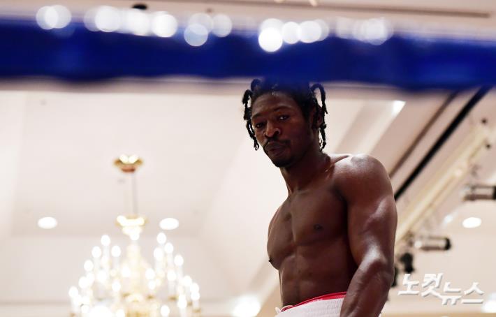 카메룬 출신의 ‘난민 복서’ 이흑산이 29일 오후 서울 홍은동 그랜드 힐튼호텔에서 챔피언 정마루와 세계복싱협회(WBA) 아시아 웰터급 타이틀매치를 갖고 있다.