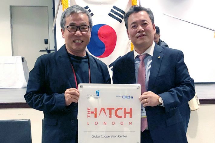 전주대 LINC+사업단은 지난 29일 영국 런던에서 (사)세계한인무역협회(OKTA) 런던지회와 글로벌 산학협력 협약식을 갖고 글로벌 산학협력 거점센터인 '해치런던(HATCH LONDON)'의 현판식을 진행했다고 30일 밝혔다.