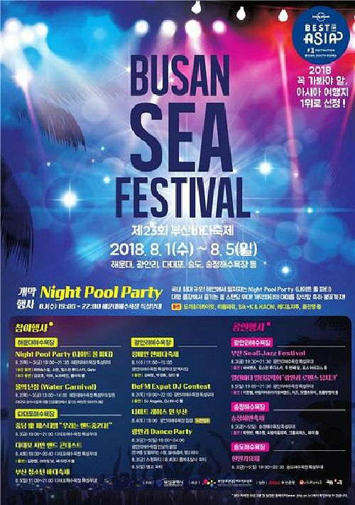 이번 축제는 8월 1일 저녁 7시 해운대 해수욕장에서 열리는 전국 최대 규모의 나이트 풀 파티( Night Pool Party )와 함께 시작된다.
