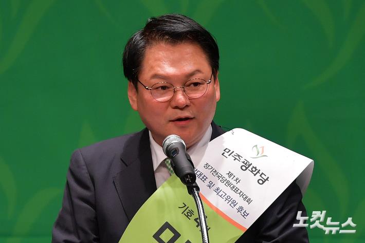 연설하는 민주평화당 민영삼 대표 후보