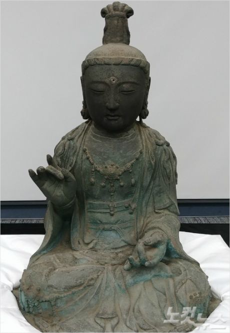 이어 "손등 부식이 심해 보존처리가 시급하다"며 "원래 이 불상에는 머리에 왕관같은 보관과 밑에 좌대 등이 있어야 하는데 정상적으로 가져가지 못하고 불상만 가져간 것은 약탈의 중요한 근거"라고 주장했다.