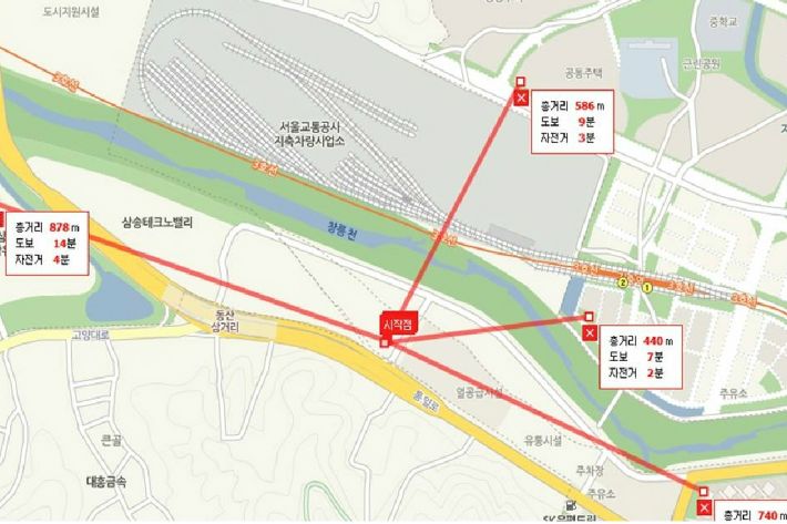 인터넷 지도를 이용한 거리 분석 자료. (사진=은평자원순환센터 백지화투쟁위원회 제공)