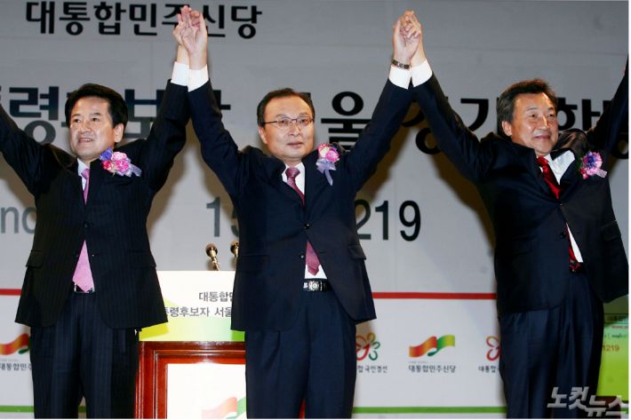 대통합민주신당 정동영-이해찬-손학규(왼쪽부터) 당시 대선 예비후보. (사진=자료사진)