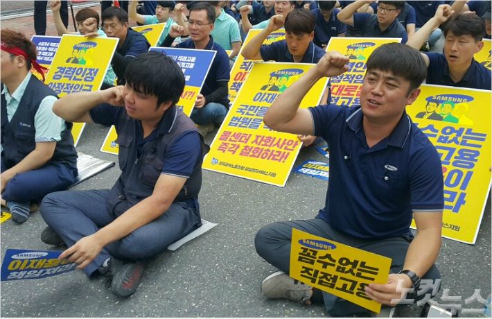 앞서 전국금속노동조합과 삼성전자서비스는 지난 4월 '회사는 협력사 업체 직원들을 직접 고용한다'는 합의서를 채택했다. 삼성콜센터 협력업체 직원은 전국적으로 약 1100명이다.
