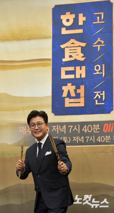 11일 서울 상암동 스탠포드호텔에서 열린 올리브 '한식대첩-고수외전' 기자간담회에서 MC 김성주가 기념 촬영을 하고 있다.
