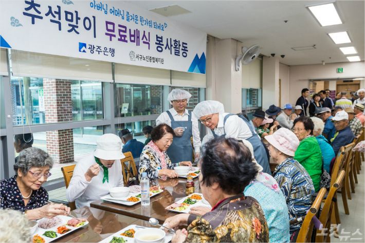 송종욱 광주은행장은 "추석을 앞두고 우리 지역 어르신들에게 푸짐한 식사를 대접해 한가위의 따뜻한 정을 나누고 싶었다"며 "앞으로도 광주은행은 지역민들의 가장 가까운 곳에서 진정한 마음을 전하는 사회공헌활동을 꾸준히 실천 하겠다"고 강조했다.