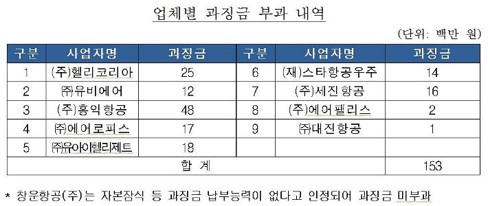 공정위에 따르면 헬리코리아 등 10개 사는 지난 2014년 1월부터 3월까지 울산광역시 등 25개 지방자치단체가 발주한 산불진화용 헬기임차 용역입찰에서 입찰참여사 간 사전에 낙찰사, 들러리사, 투찰가격 등을 합의했다.