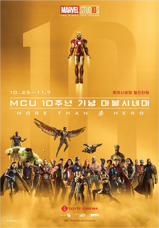 롯데시네마가 마블 스튜디오 10주년을 맞아 특별 기획전 'MCU 10주년 기념 마블시네마'(이하 '마블시네마')를 개최한다. 오는 25일부터 11월 7일까지 2주에 걸쳐 진행될 '마블시네마'는 롯데시네마 월드타워에서 총 17편의 영화를 상영하는 대규모 기획전이다.