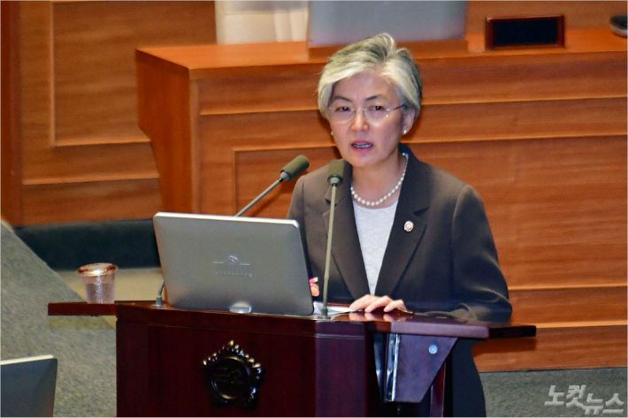 강 장관은 "대북제재 완화와 관련된 의제가 검토된 바 있는지"를 묻는 더불어민주당 이인영 의원의 질문에 "미국은 아직 제재 완화를 논의할 단계가 아니라는 입장이다"라고 답했다.
