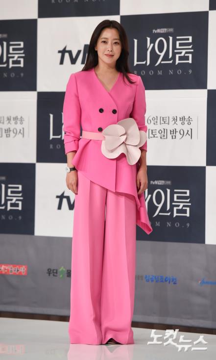 배우 김희선이 2일 오후 서울 영등포구 타임스퀘어 아모리스홀에서 열린 tvN 토일드라마 ‘나인룸’ 제작발표회에 참석해 포토타임을 갖고 있다.