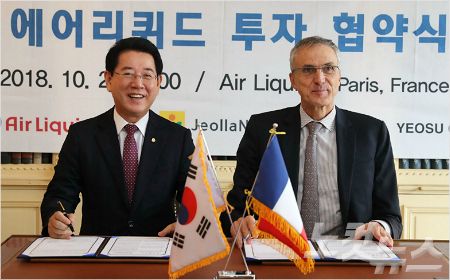 전라남도와 여수시는 2일(현지 시각) 프랑스 파리 에어리퀴드 본사에서 에어리퀴드와 1천260억 원 규모의 투자협약을 체결했다.
