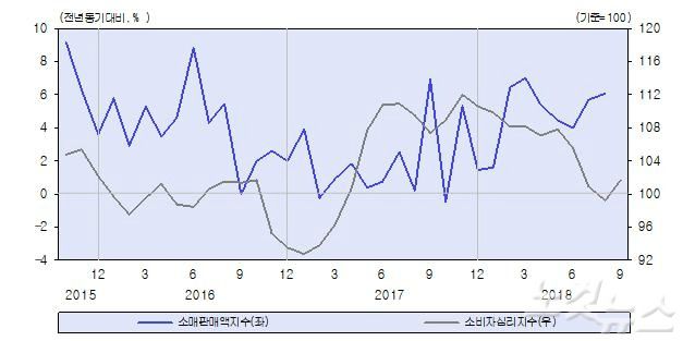 소매판매액은 개별소비세 인하 등의 영향으로 전월(5.7%)과 유사한 6.0% 증가율을 유지했지만, 서비스업 생산 증가폭의 축소 등을 감안하면 전반적인 소비 개선 흐름은 완만한 수준에 머무른 것으로 판단됐다.