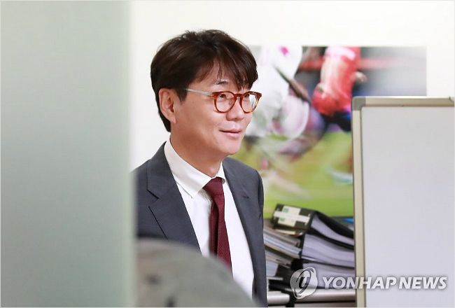 프로축구 강원FC 조태룡 대표가 15일 오후 서울 종로구 신문로 축구회관에서 열린 한국프로축구연맹 상벌위원회 재심의에 출석해 대기하고 있다.
