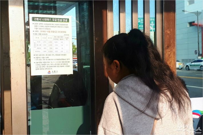 또 강릉을 포함한 춘천, 원주, 삼척 등 4개 통합시는 오는 26일부터 현행 성인 기준 1300원에서 1400원으로 요금이 인상되며, 나머지 14개 시군은 1200원에서 1400원 오른다.