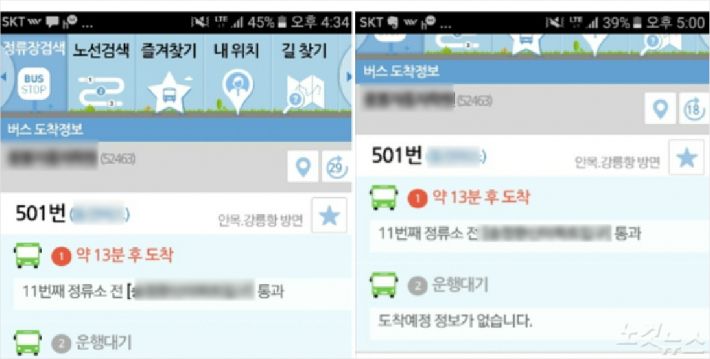 이날 오전 6시쯤 집에서 출입처인 경찰서까지 시내버스를 타고 이동하기 위해 정류장에 도착했지만, 버스 도착 안내에 대한 정보는 물론 시간표도 찾아보기 어려워 탑승부터 난관이었다.