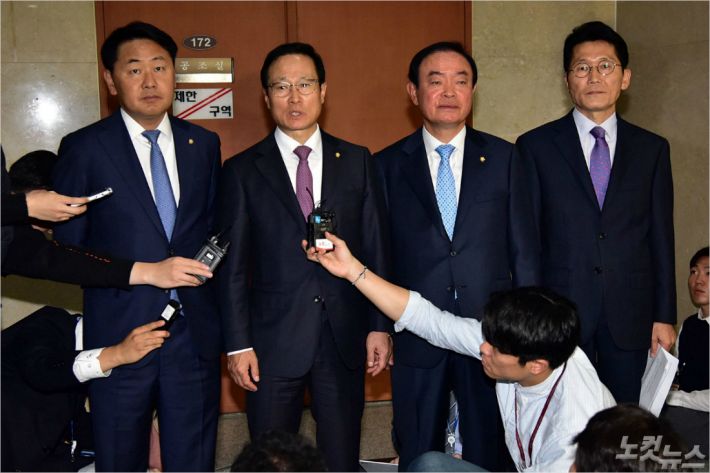 민주당 홍영표 원내대표는 한국당을 제외시킬 수 있느냐는 질문에 " 충분히 논의하고 있지만 한국당은 동의하지 않고 있다"며 "4당이 한국당을 설득하는 노력해 마무리 지을 수 있도록 하겠다"고 합의처리 의사를 나타냈다.