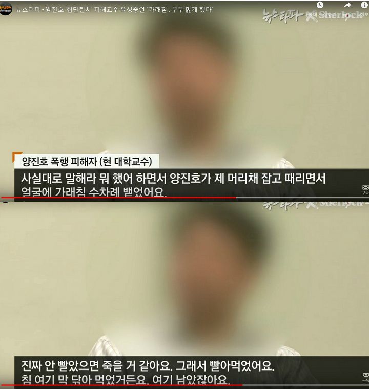 폭행 과정에서 양 회장은 해당 교수의 얼굴에 가래침을 뱉고, 구두를 핥게하는 것도 모자라 매 값으로 200만원을 강제로 쥐어주며 병원에 다녀오라는 등 인격모독성 발언까지 한 것으로 드러났다.