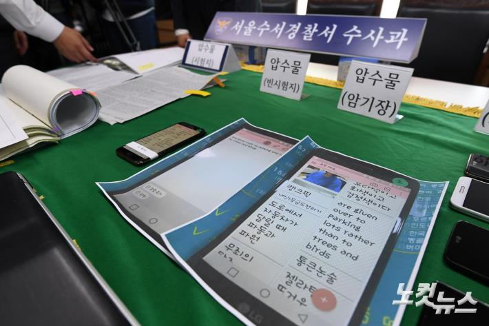 12일 오전 서울 강남구 수서경찰서에서 숙명여고 시험문제 유출 관련 압수물이 보이고 있다. 숙명여고 시험문제 유출 의혹사건을 수사한 경찰은 전 교무부장이 쌍둥이 자녀들에게 문제와 정답을 유출한 것으로 보고 이들을 기소의견으로 검찰에 송치했다.